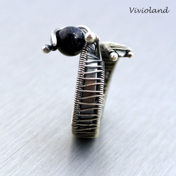 Wykonany w całości ręcznie metodą wire-wrapping, polegającą na pracochłonnym łączeniu za pomocą precyzyjnego owijania różnej grubości drutów srebrnych, a następnie łączeniu ich z kamieniami naturalnymi (w tym przypadku jest to noc kairu). Srebro jest oksydowane, oraz powierzchniowo polerowane dla podkreślenia finezji zwojów.