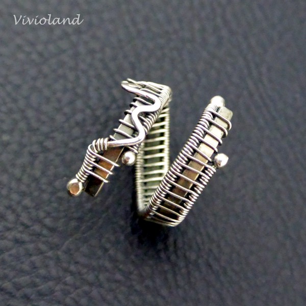 Pierścionek Half-Finger (zakładany do połowy palca) wykonany w całości ręcznie metodą wire-wrapping, polegającą na pracochłonnym łączeniu za pomocą precyzyjnego owijania różnej grubości drutów srebrnych. Srebro jest oksydowane, oraz powierzchniowo polerowane dla podkreślenia finezji zwojów.